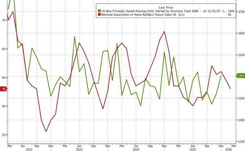 Additionally, Housing Starts rose as Home Builders confidence crumbled (and Future Sales expectations dropped)…