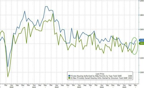 The surprise monthly surge lifted the SAAR totals for both housing sector data points to multi-month highs…