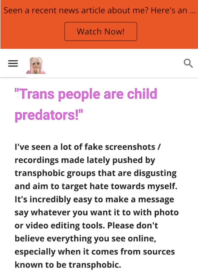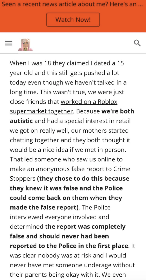 On his blog, he wrote about previously being accused of being in a romantic relationship with a 15-year-old. He denied the claim and said they were “just close friends” who worked on a Roblox supermarket together.