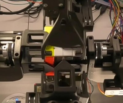 A video of the demonstration shows the robot using its four arms to manipulate the cube until its sides are all solid colors.