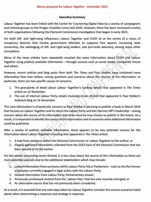 A British Labour Party official denied during a phone call that I was a focus of their attention when I called for an explanation a couple days ago. I’m releasing one of the documents leaked to me from a London reporter that shows I was one of the British Labour Party’s targets.