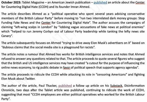 I published some further investigative details about CCDH, here at The DisInformation Chronicle, about a week after my Tablet investigation. In this piece, I reported that CCDH’s reports were rather flimsy and that CCDH’s “head of research” was some British dude named Callum Hood who had no employment history except working at CCDH. I later reported that Callum Hood was also a former Labour Party operative.