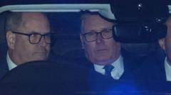 Sir Keir Starmer (centre) in the back seat of a car leaving Downing Street