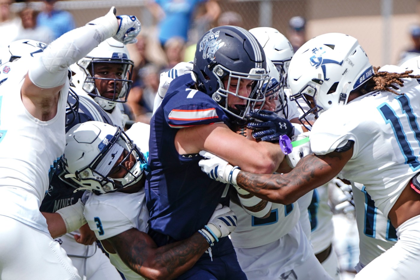 That’s when things got a little, well, different. Capra said he played some Clash Royale on his phone and got some food. Linebacker Christian Peluse, who had five tackles and one of Mines’ six sacks, said there was a concert and a dance party at one point.