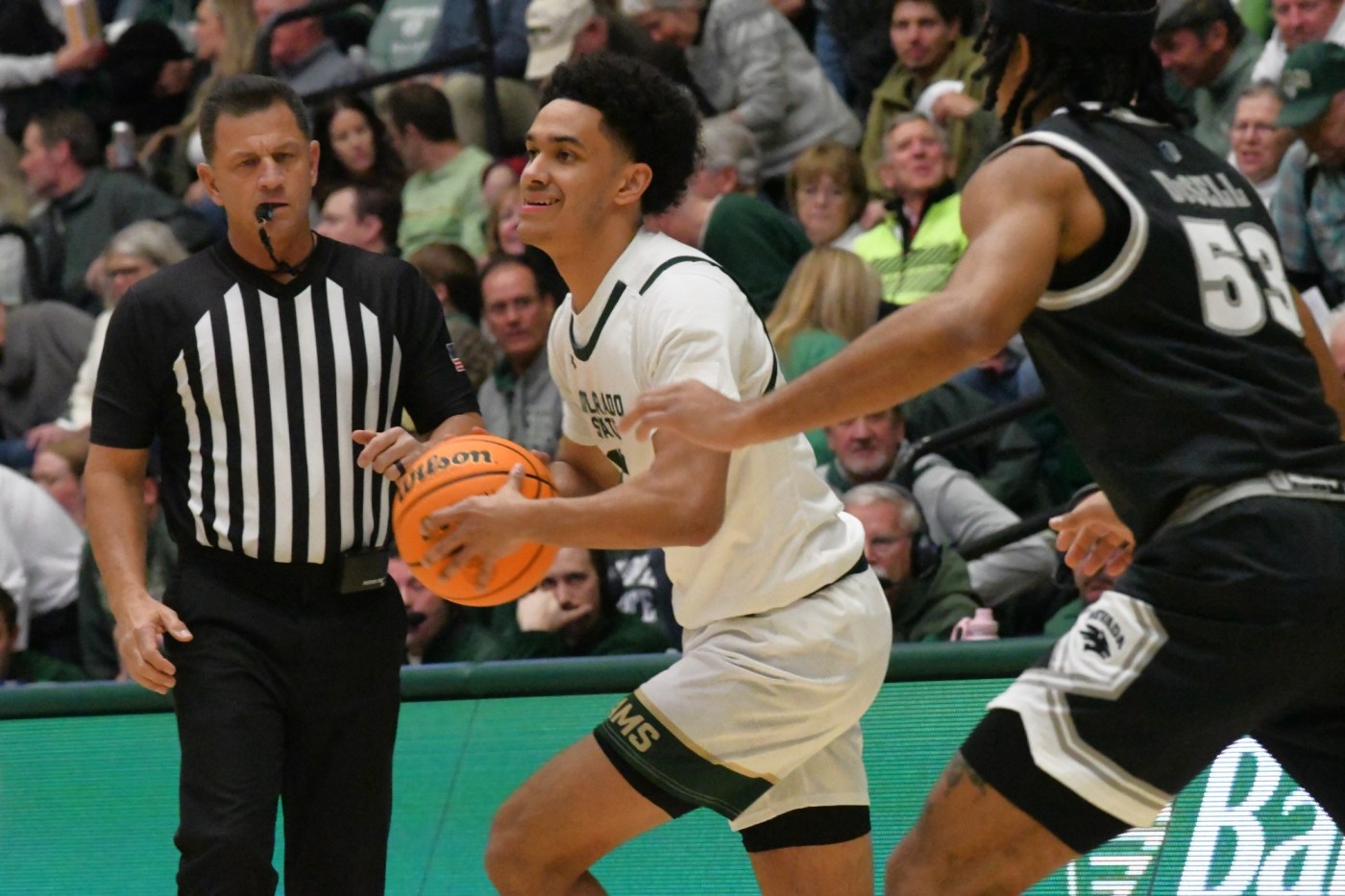 CSU was able to trim the Nevada lead in the closing minutes of the first half. A 3-pointer by Clifford cut the Wolf Pack’s lead to 34-30 with 2:37 to go, and a three-point play by Mbemba made it 36-33 as the teams went off the court.