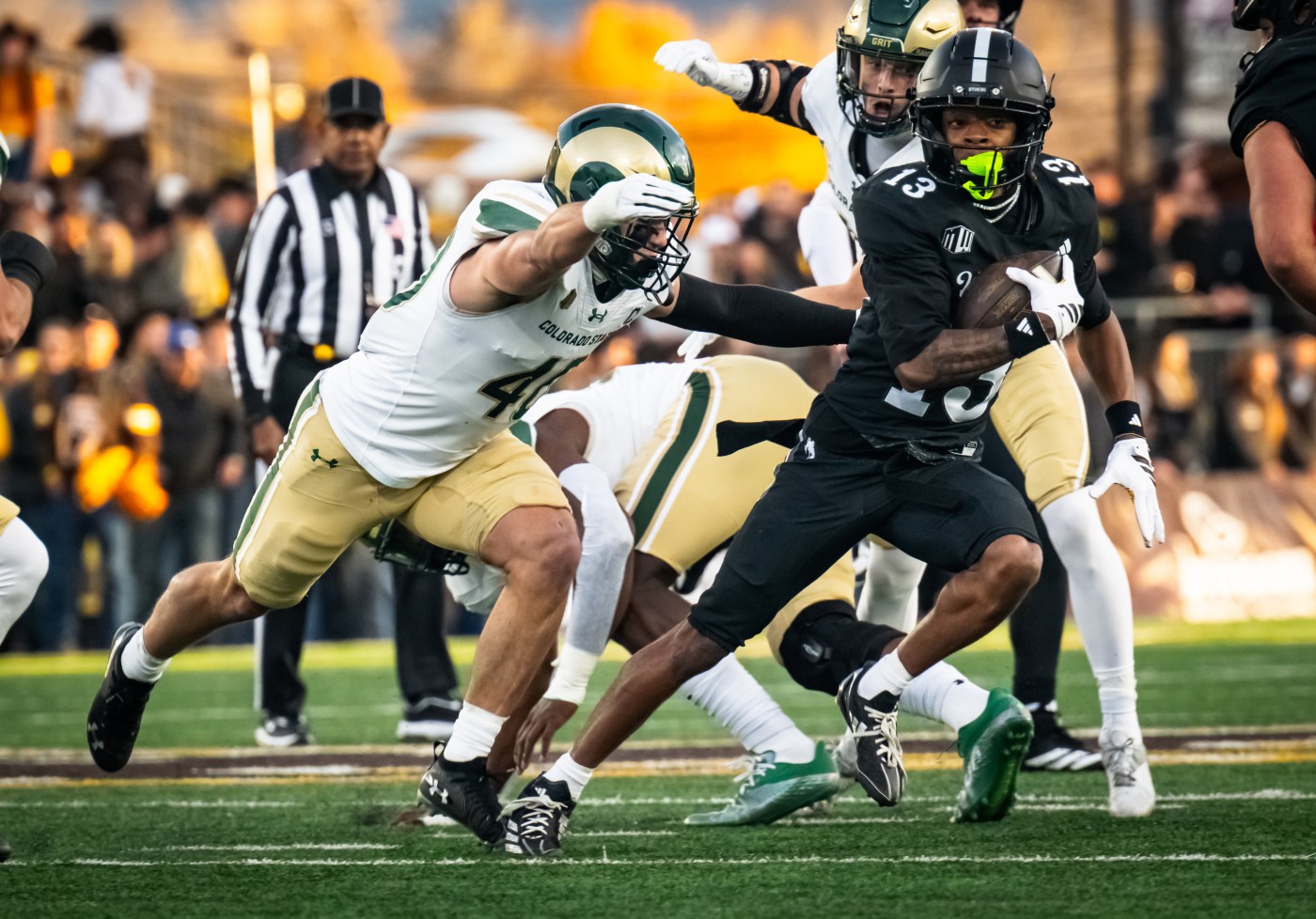Lighting up the scoreboard: While the Rebels are coming off consecutive losses for the first time since 2023, UNLV still boasts the top offense in the Mountain West. The Rebels, headlined by QB Anthony Colandrea, tailback Jai’Den Thomas and several talented wideouts, lead the conference at 36.88 points per game. UNLV’s scored at least 20 points in 30 straight regular-season games, the second-longest active streak in FBS. CSU interim head coach and defensive coordinator Tyson Summers has a tall task matching wits with UNLV coach Dan Mullen on Saturday.