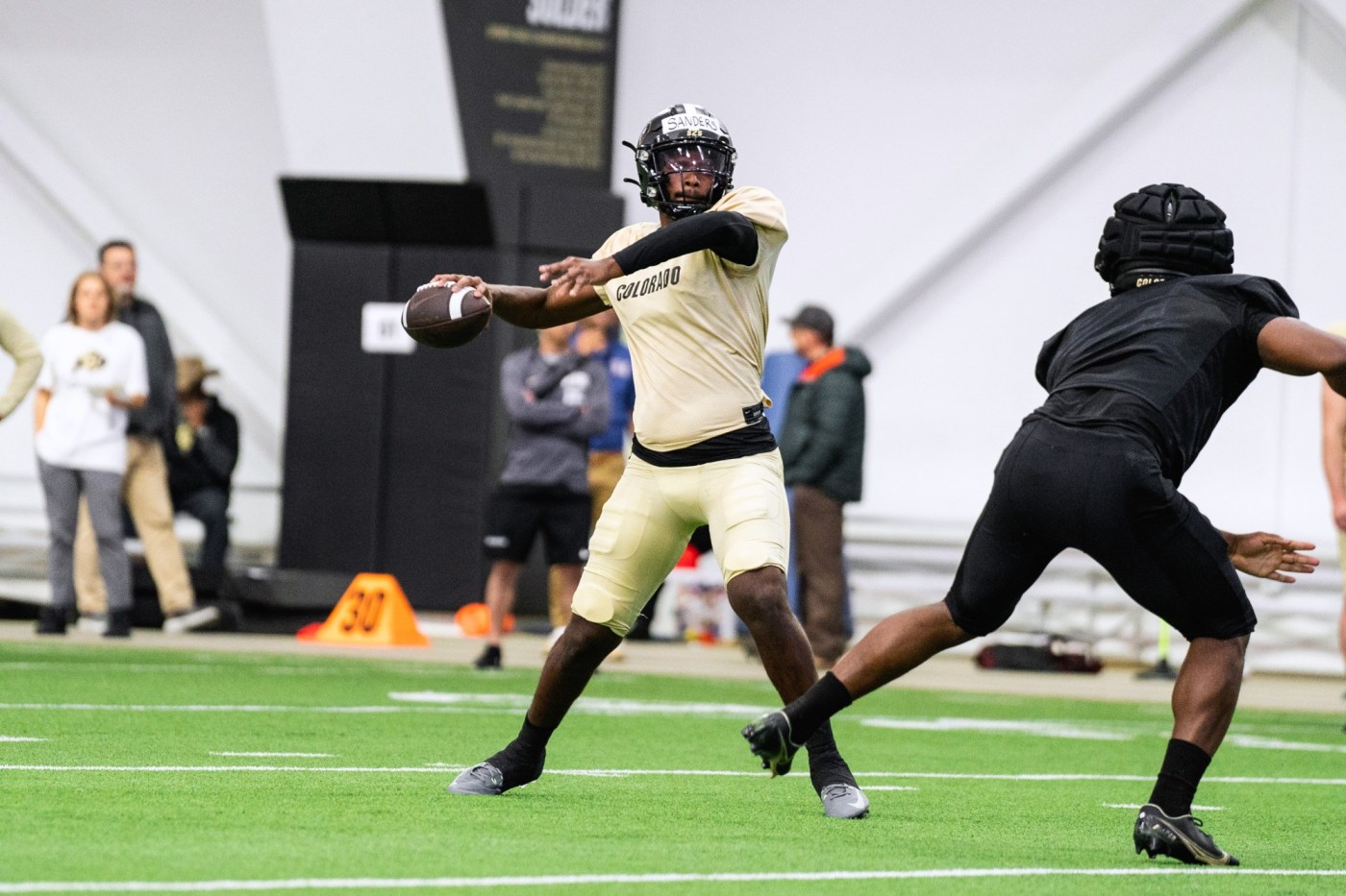 The Ford Practice Facility is 108,000 square feet and supports nearly every CU sport. It features a full-sized football field, a six-lane, 300-meter track, and space for conditioning, practices, and individual workouts.