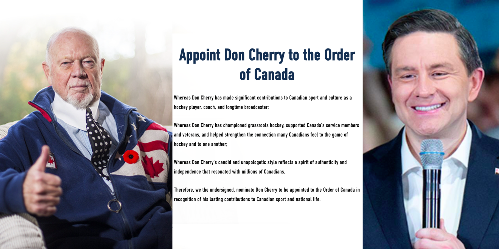 Whereas Don Cherry has championed grassroots hockey, supported Canada’s service members and veterans, and helped strengthen the connection many Canadians feel to the game of hockey and to one another;