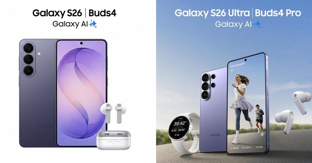 Official-looking Samsung promo materials posted on Twitter/X by @ya_sking12767 show off Samsung’s new phones – Galaxy S26, S26+, and Galaxy S26 Ultra, alongside the Galaxy Buds 4 series. There’s prominent Galaxy AI branding, of course, as well as a quick look at Samsung’s Photo Assist feature showing some prompt-based image editing. Samsung previously teased that edits would be more integrated with the rest of the camera experience this year.