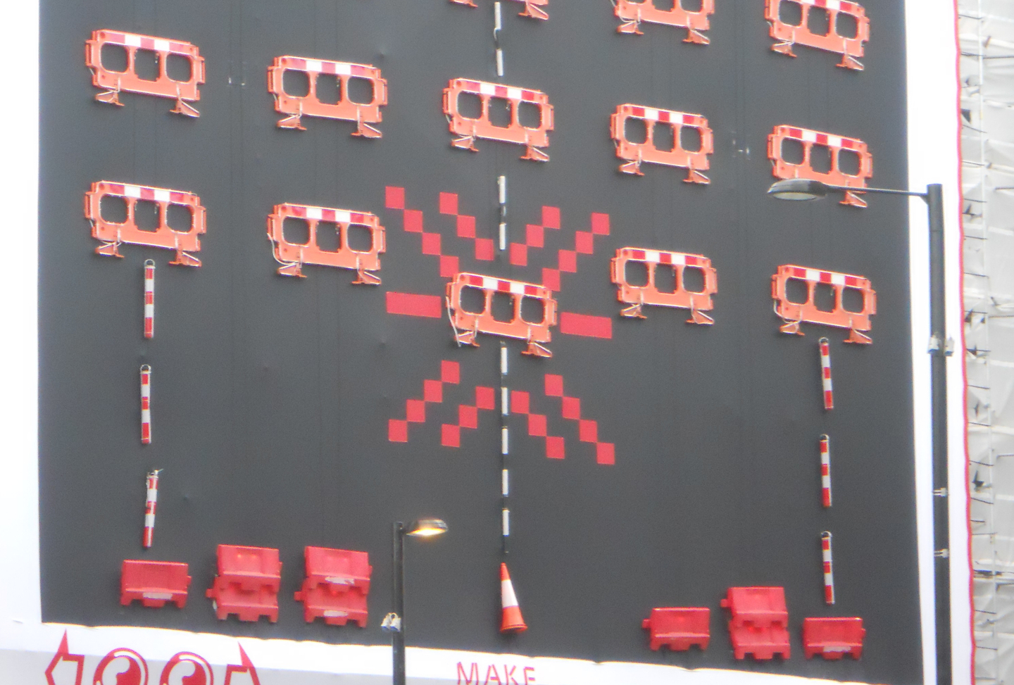 (Image source: “Space Invaders does cones and safety barriers” by Gene Hunt is licensed under CC BY 2.0. To view a copy of this license, visit https://creativecommons.org/licenses/by/2.0)