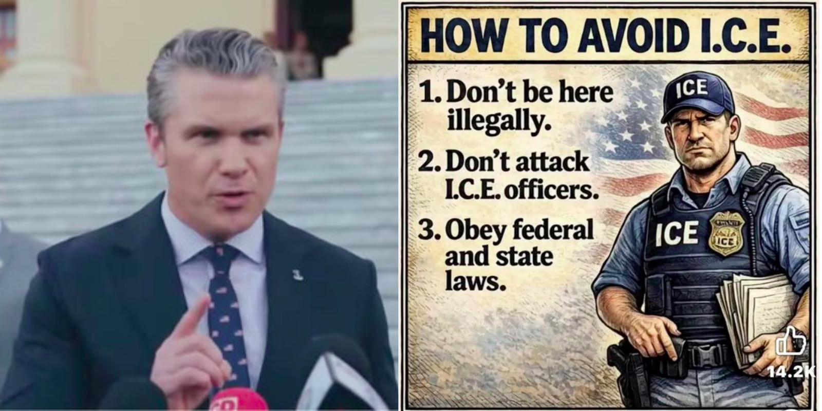 Secretary of War Pete Hegseth posted a “How To” graphic on how to avoid Immigration and Customs Enforcement, following the fatal shooting of an armed anti-ICE agitator during a federal operation in Minneapolis over the weekend.