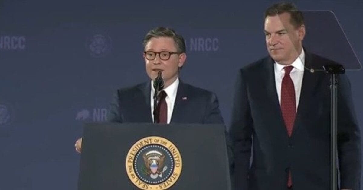 Johnson went on to say that the NRCC had set a fundraising record of $18.5 million in the first quarter. After wrapping up, the speaker introduced Trump, who walked onstage to Lee Greenwood’s “God Bless America.”