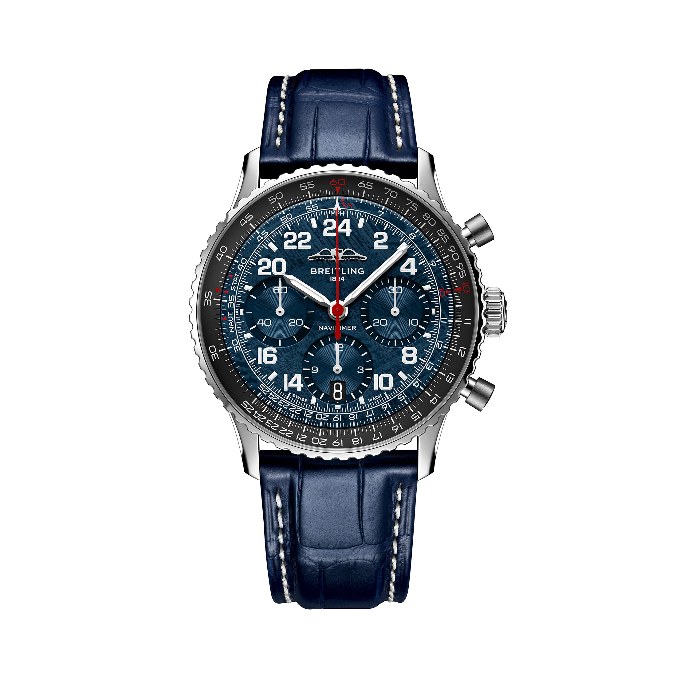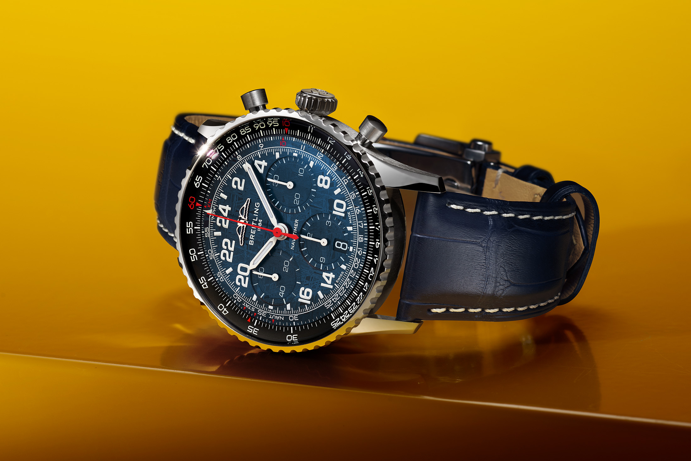 Today, in a well-orchestrated bid to make the most of the associated publicity, Breitling is confirming the new Cosmonaute’s use on the space flight and releasing a limited edition version of the same watch model. Featuring a blue meteorite dial, the new Navitimer B02 Chronograph 41 Cosmonaute Artemis II will be available in just 450 pieces, Breitling says.