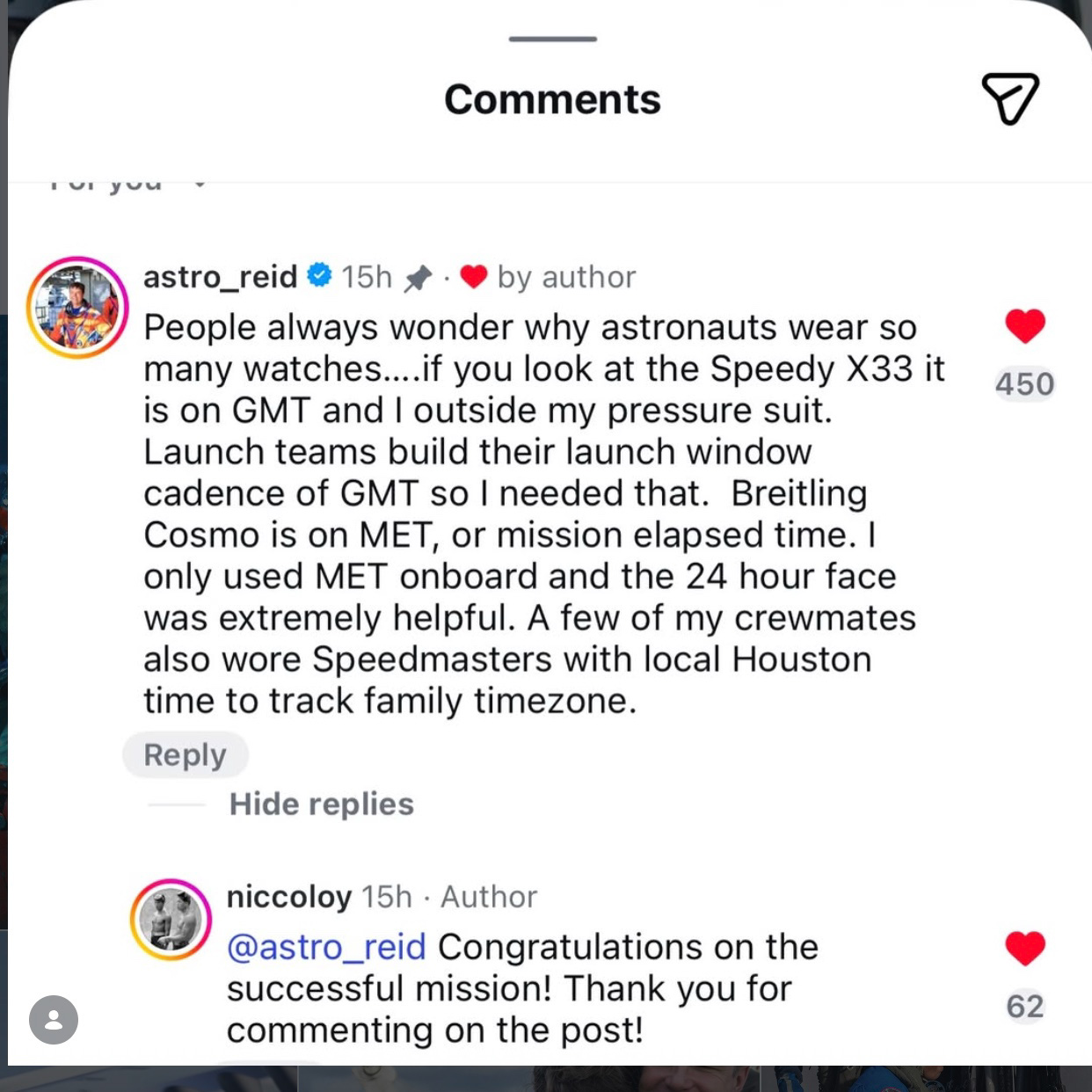 The Navitimer Cosmonaute’s historical role and continued utility as a NASA mission-designed and ready instrument were given a massive boost being worn in space by the astronauts of Artemis II. The mission commander Wiseman even talked about the watch and the reason for its use in a comment on the @niccoloy Instagram post about it. Wiseman said the watch was used to track ‘mission elapsed time’ or MET while onboard and noted that the 24-display was “extremely helpful.”