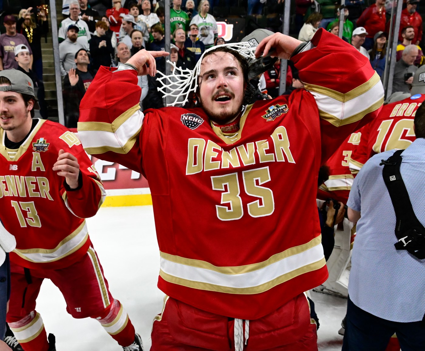 The affable, 6-foot-1 Calgary native stopped 46 shots in last Saturday’s 4-3, double-OT loss to Western Michigan in the NCHC Frozen Faceoff title game. He stoned 93.1% of Arizona State’s shots on goal in a 4-2 DU win the day before that.