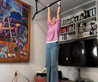 Ann Crile Esselstyn, a lifelong athlete from Ohio, broke a Guinness World Record by holding a dead hang position for nearly 3 minutes at the age of 90. Photo courtesy of Guinness World Records