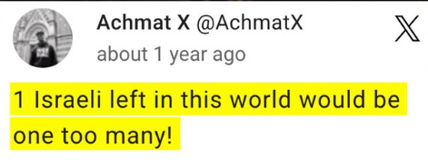 “1 Israeli left in this world would be too many!”