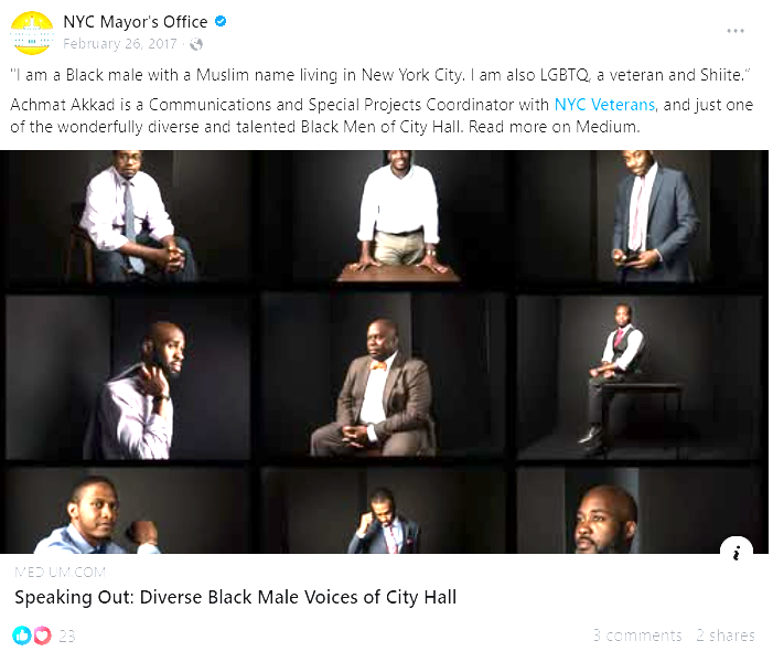 Achmat Akkad is a Communications and Special Projects Coordinator with NYC Veterans, and just one of the wonderfully diverse and talented Black Men of City Hall. Read more on Medium.