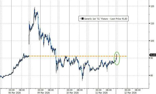 Oil prices are surging higher on the news with WTI back above $91 – now up on the week and 20% higher than yesterday’s lows…
