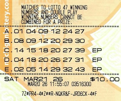 April 6 (UPI) — A woman who has been playing the Michigan Lottery‘s Lotto 47 twice a week for decades had her persistence pay off with a $1.1 million Lotto 47 jackpot.