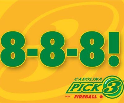 A North Carolina Education Lottery said 13,750 tickets won a total $3.1 million in prizes when a Pick 3 drawing came up with the winning numbers 8-8-8. Image courtesy of the North Carolina Education Lottery
