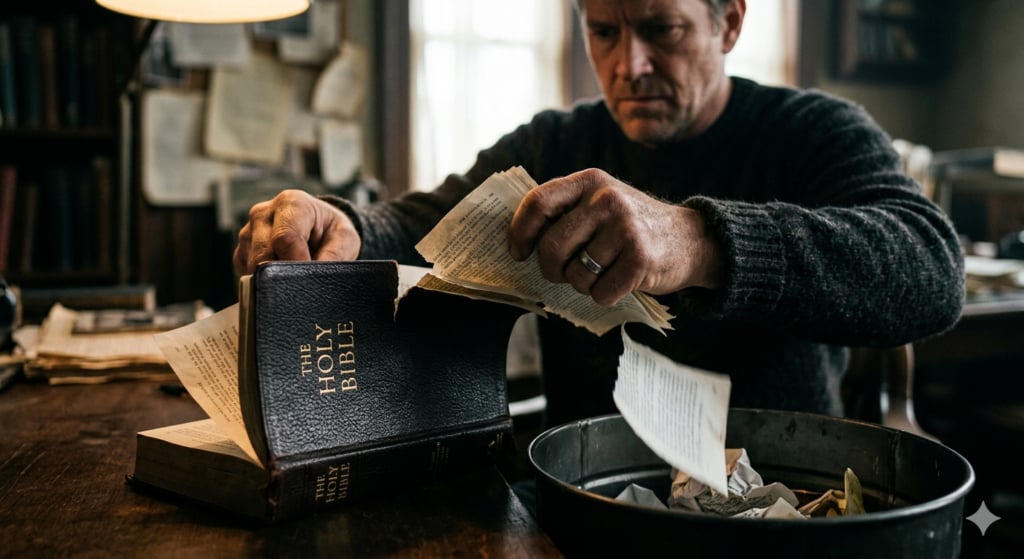 She said they contain bad theology. Then she said, with a kind of smiling violence that should make every Christian shudder, that “We need to pull those pages out.” You can almost hear it. Thin paper tearing. A hand reaching for the Book that has outlived empires, buried tyrants, steadied martyrs at the stake, and carried dying saints across the final river.