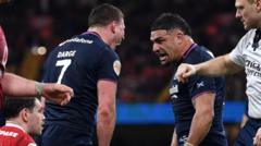 Scotland captain Sione Tuipulotu produced a strong tackle on Wales full-back Louis Rees-Zammit that yielded a penalty for the visitors but they could not initially take advantage.
