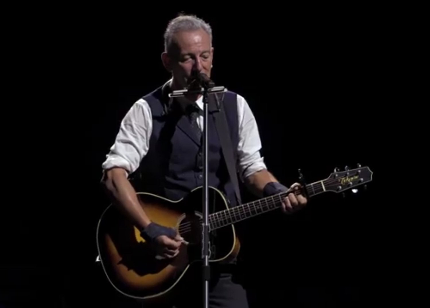 Springsteen began to address an audience, saying, “The richest men in America have abandoned the world’s poorest children to death and disease through dismantling of U.S. aid. This is happening now. We’re undermining NATO and the world order that kept us safe and at global peace for 80 years. This is happening now.”