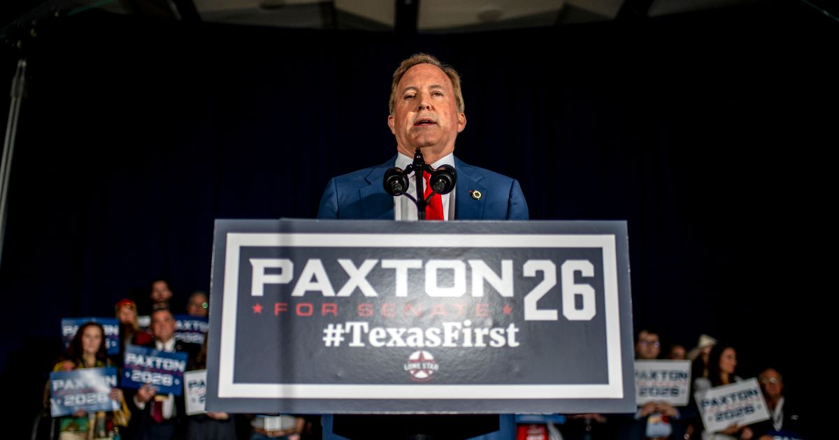 U.S. Senate candidate Ken Paxton speaks to supporters at a watch party on March 3, 2026, in Dallas, Texas. (Sergio Flores / Getty Images)