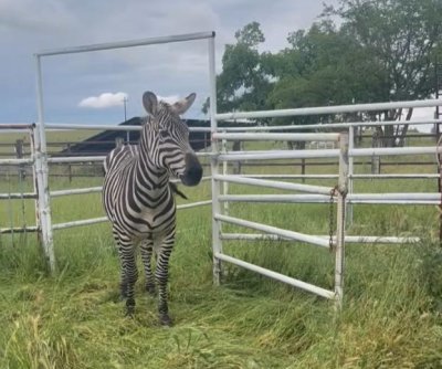 April 14 (UPI) — A zebra named Zeus escaped from his owner’s property in Northern California for the second time in just a few days.