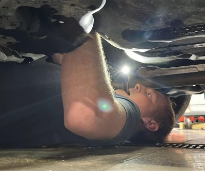 Tyler Williams, a senior mechanic with the department’s maintenance shop, went underneath the vehicle and was able to locate the kitten’s hiding spot.