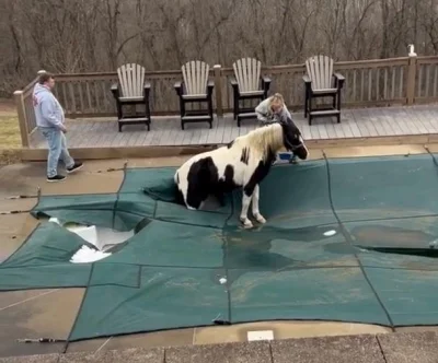 Feb. 19 (UPI) — Firefighters and animal rescuers teamed up in Ohio to rescue a horse that wandered away from its pasture and ended up stranded in a neighbor’s backyard swimming pool.
