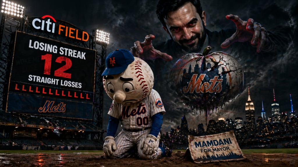 The New York Mets started their life Major League Baseball in 1962 as lovable losers, losing their first nine games and sixteen of their first twenty. Now, nearly six and a half decades later, the Mets are losers again, but not remotely lovable. In fact, the team’s ownership appears to have taken a decided turn to the left, and since the team’s mascots warmly embraced New York City’s Communist Twelver Shi’ite mayor, it hasn’t won a game. Coincidence? Sure. But it’s a superbly symbolic one.