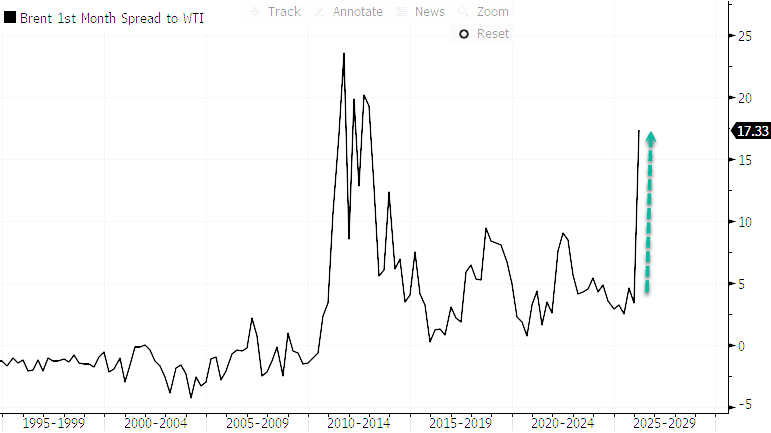 Triscott pointed out that traders are already beginning to price in this next intervention, with the WTI–Brent spread widening to its highest level since about 2012.